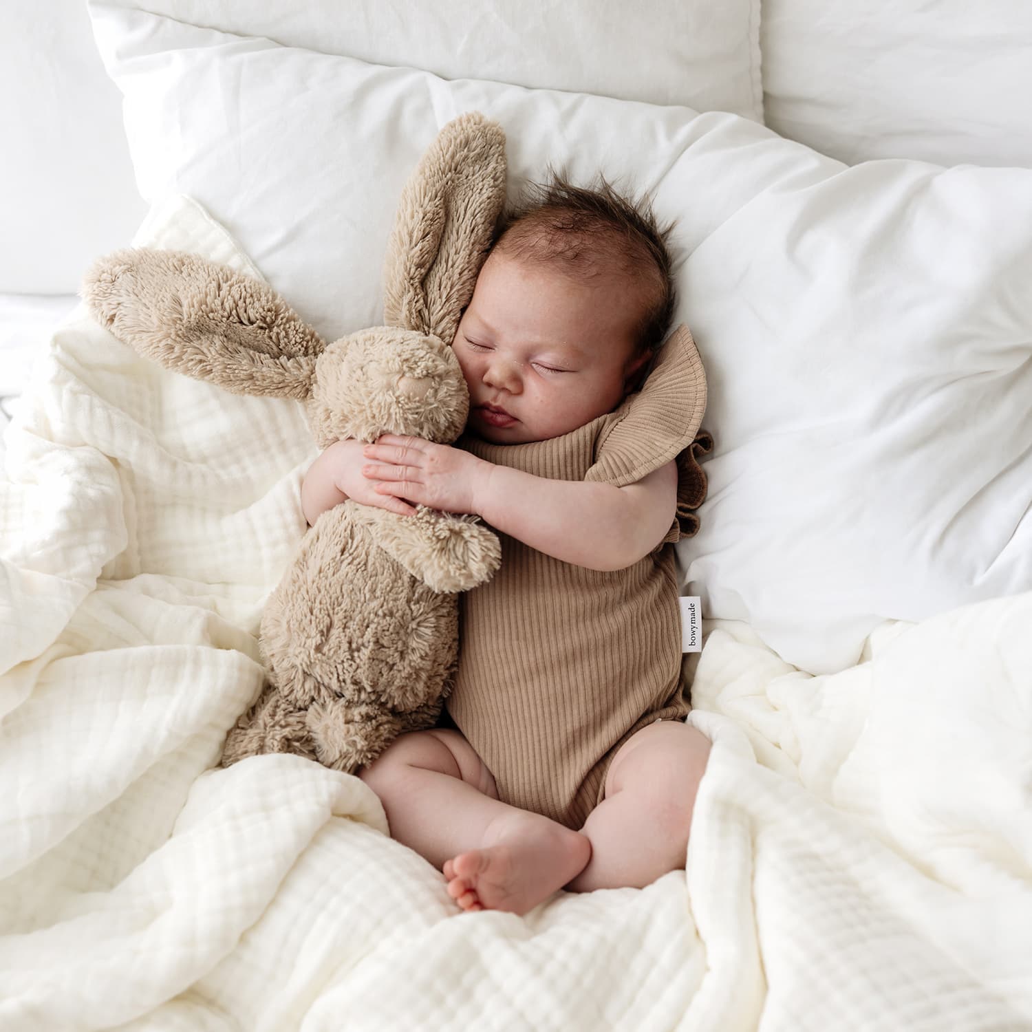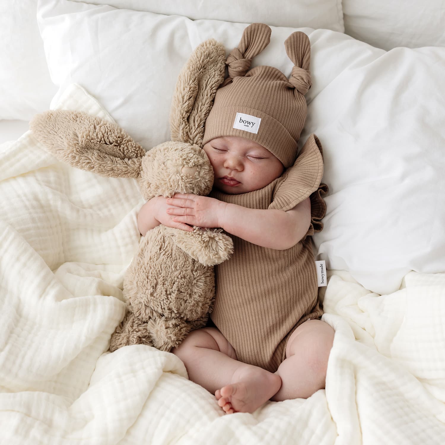 Our Chocolate Summer Frill Onesie is crafted from soft ribbed cotton that feels gentle and breathable against baby skin. Designed for warmer days, it features delicate frill sleeves and practical press-stud closures for easy changes. A beautiful neutral piece that delivers everyday comfort with that signature Bowy Made touch.