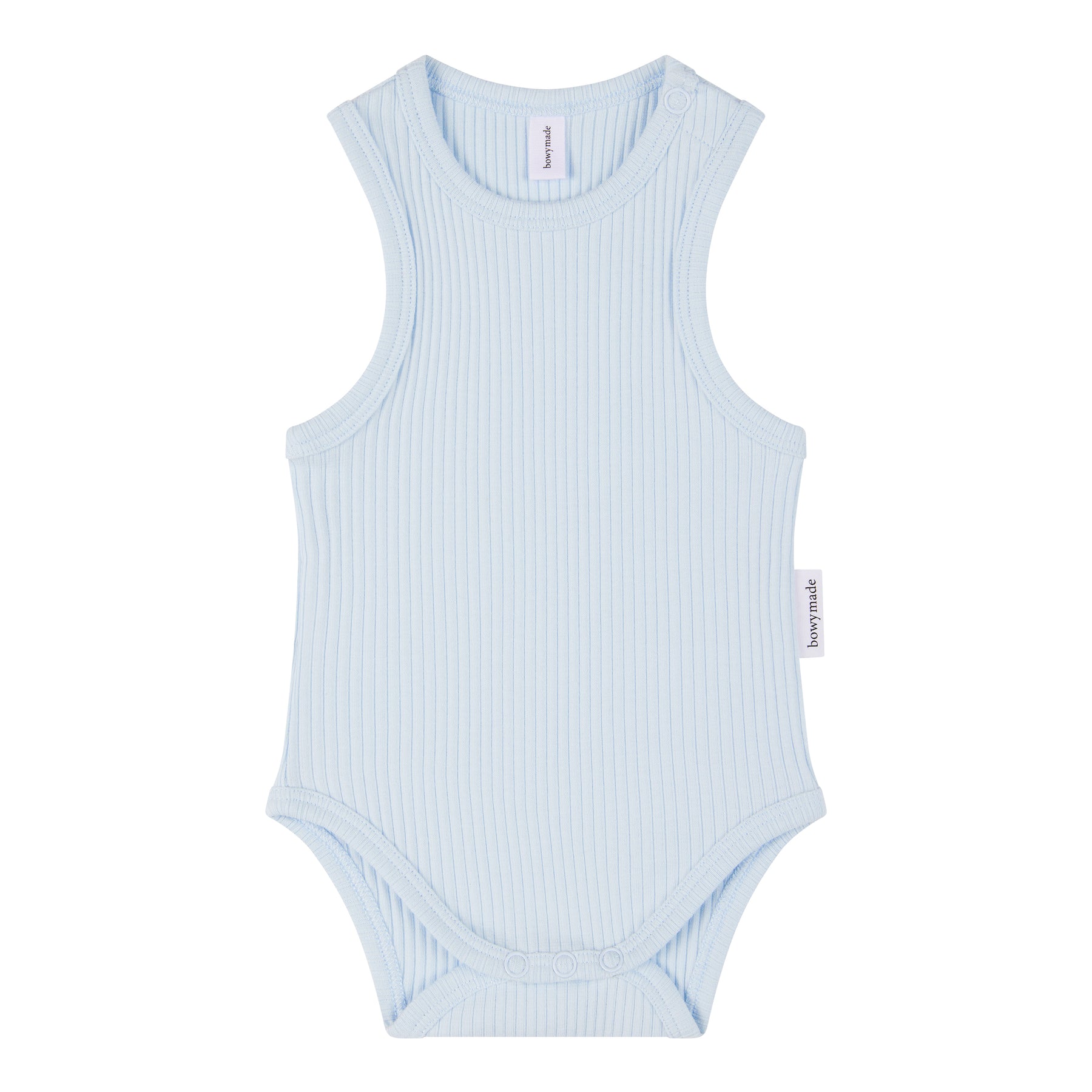 Designed for warmer days, our Powder Blue Baby Summer Onesie is crafted from our signature ribbed cotton blend — soft, breathable, and perfectly stretchy for all-day comfort. Featuring easy press-stud clasps for quick changes, this lightweight piece keeps your little one cool while looking effortlessly adorable.